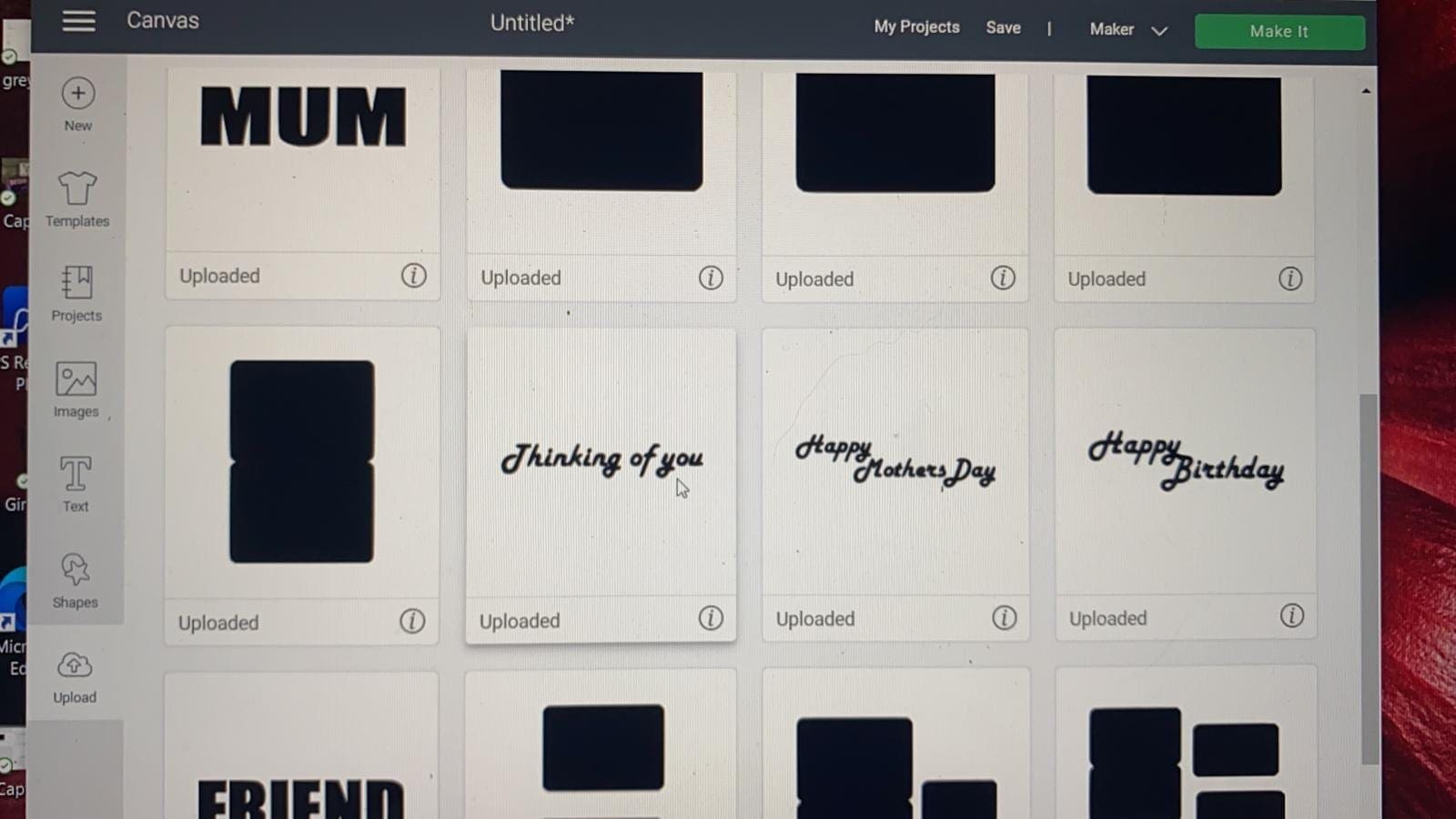 2. Upload each PNG into the design space as shown below.