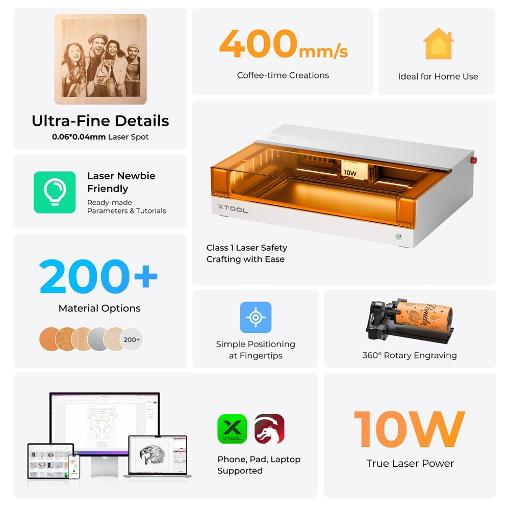 xTool S1 10W Laser Engraver – Ultra-Precision, All-in-One Engraving Machine