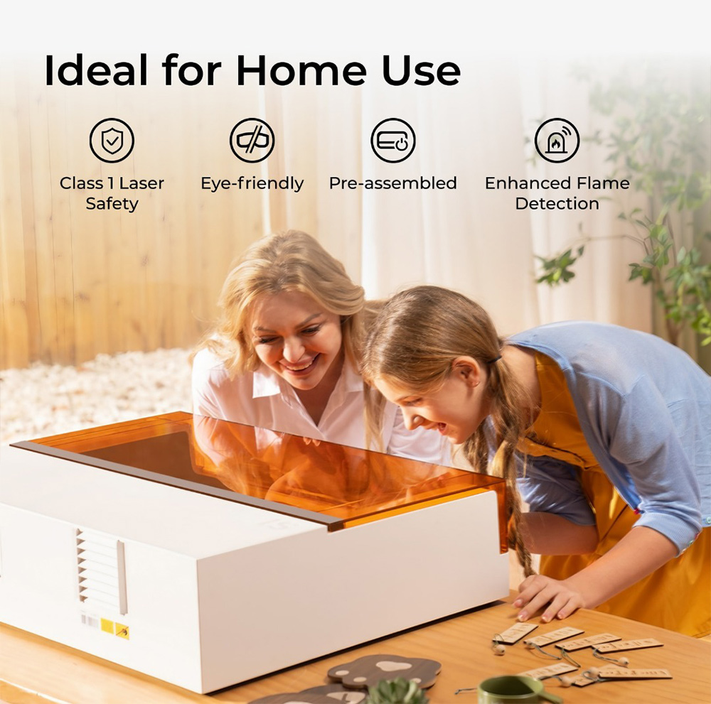 Class 1 enclosed laser system. You don’t need protective goggles for normal use, making it ideal for educational settings, home workshops and shared spaces.